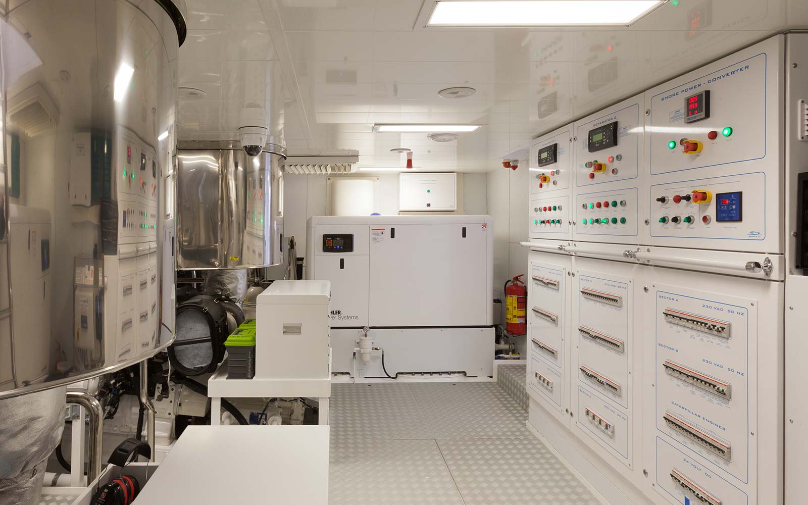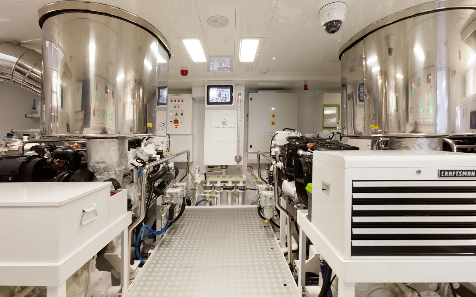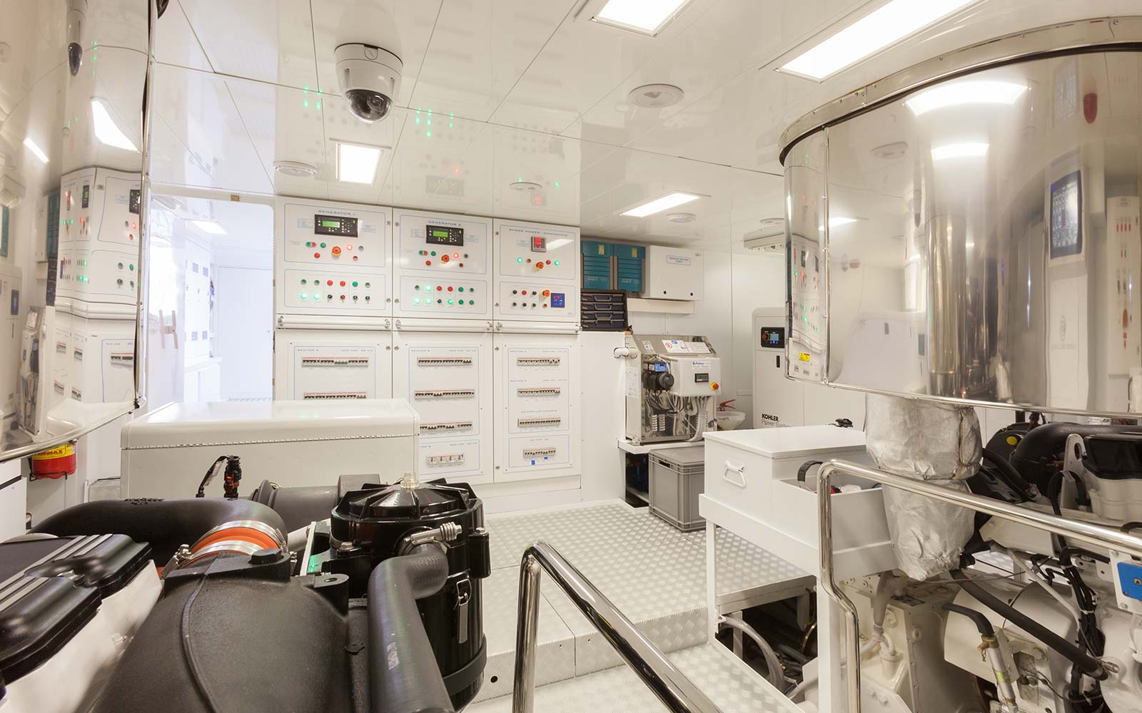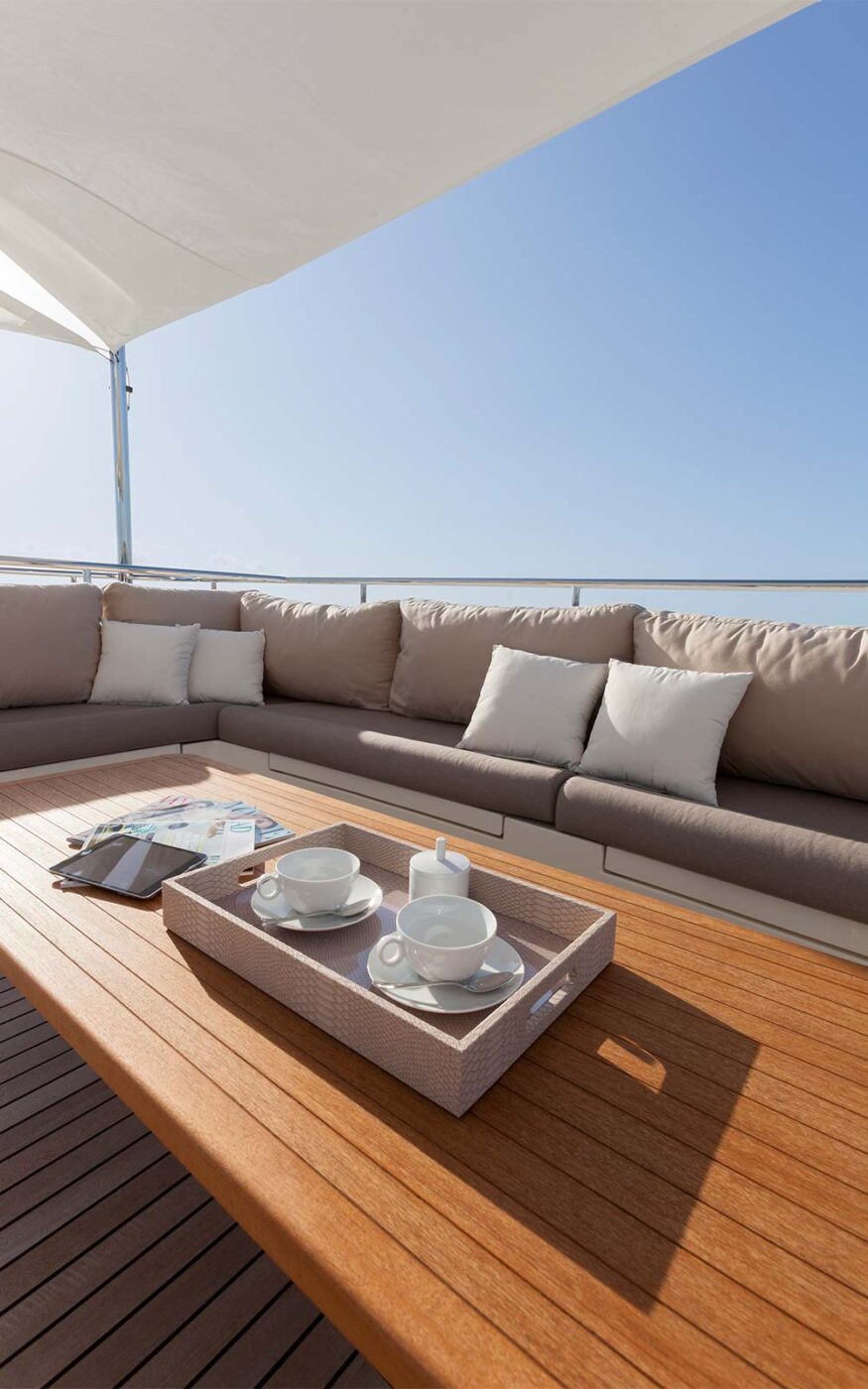 Built for a very experienced seaman and passionate for diving, M/Y Acala features several customizations: a 2 tons crane can launch 6+ mt tender, air-conditioned outdoor areas and a diving center in the lazarette, tanks holder and proper lockers for all the diving gear.
