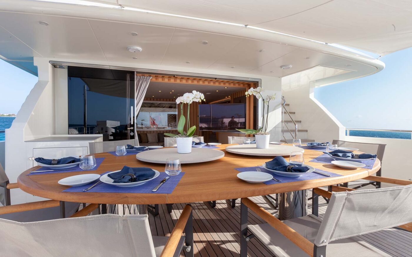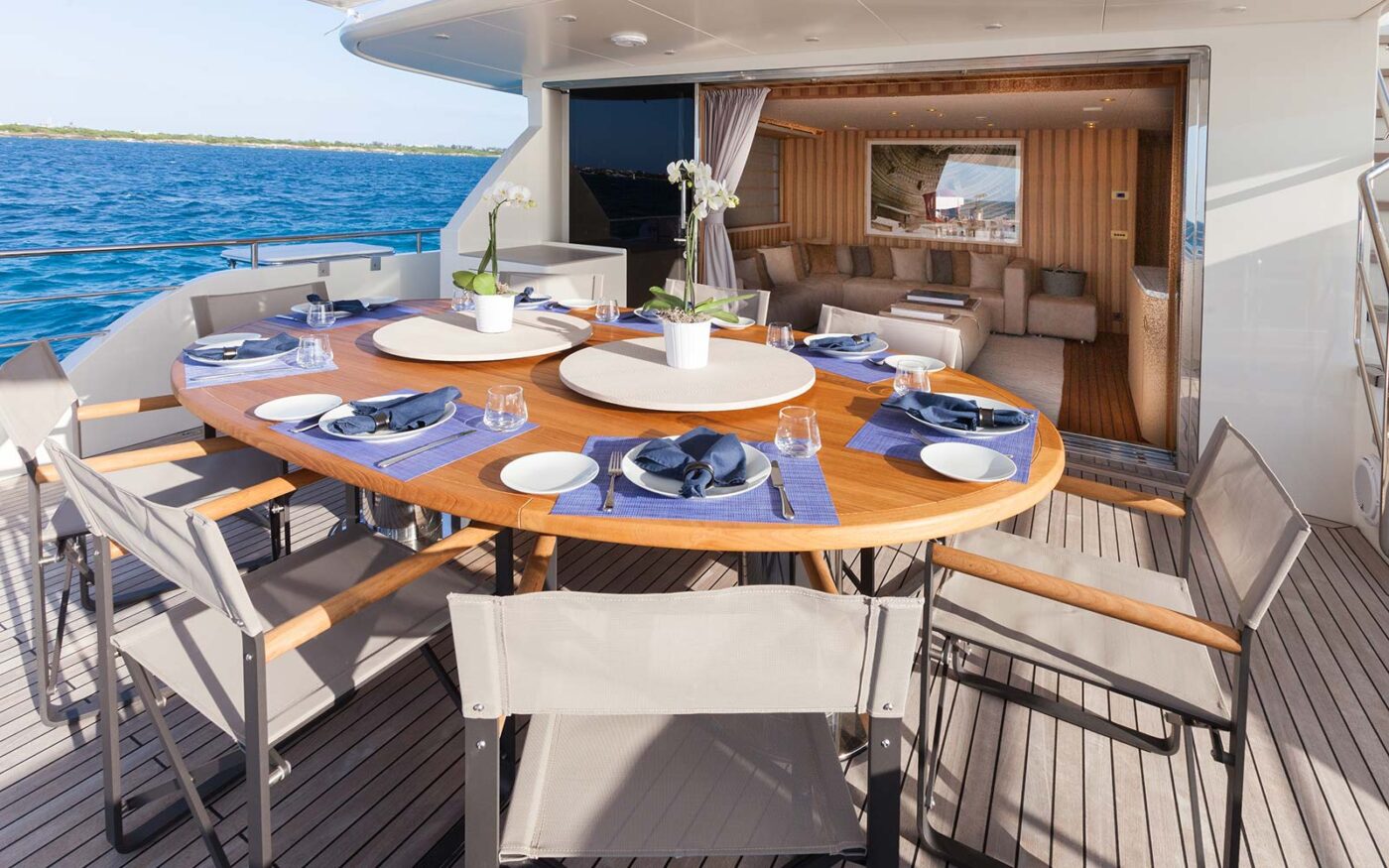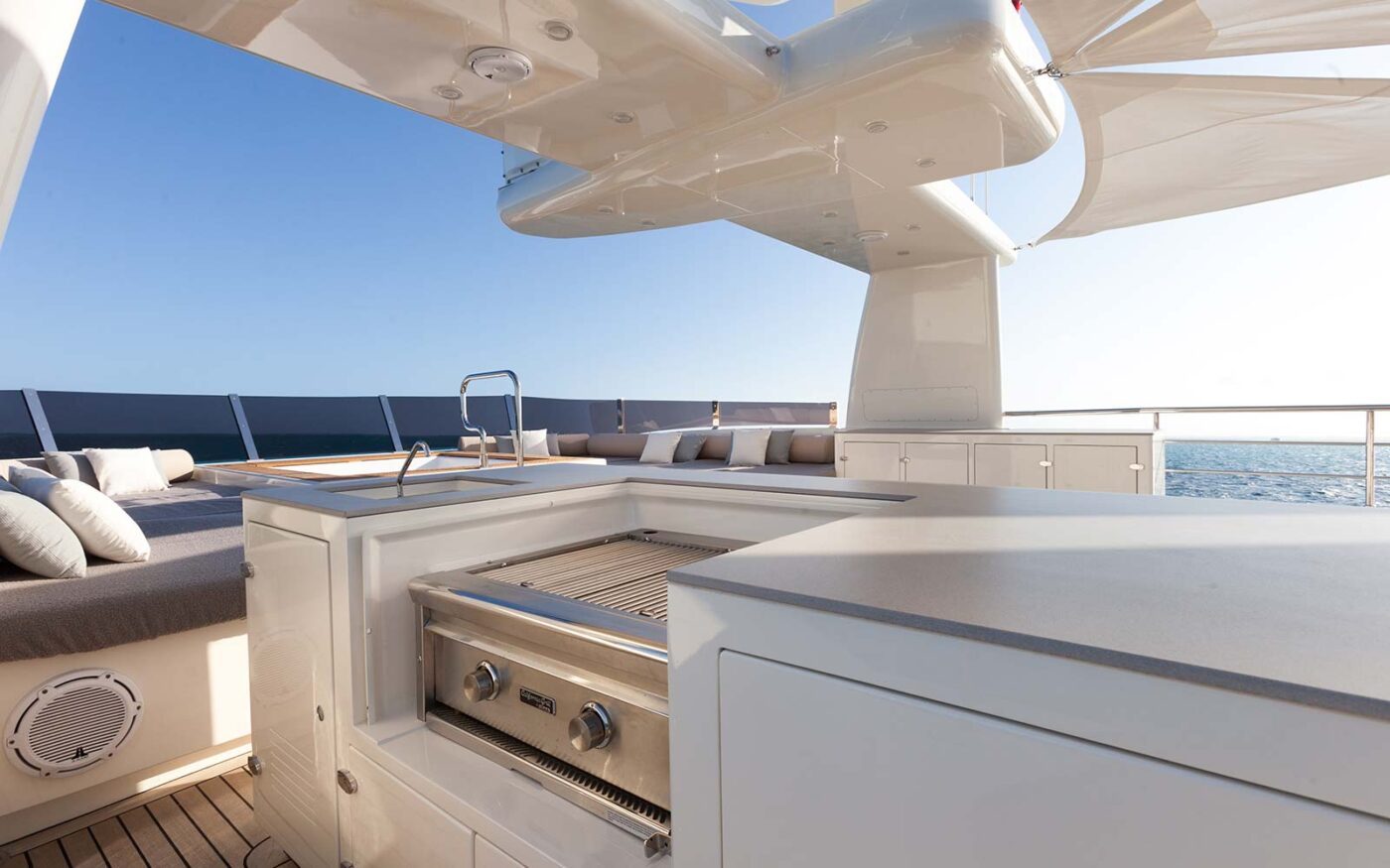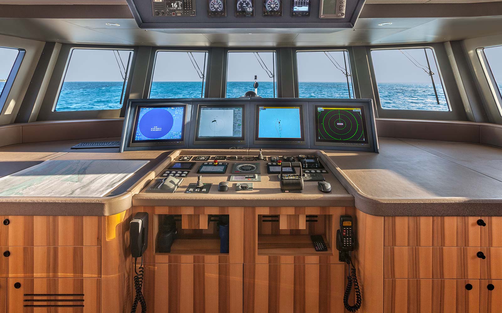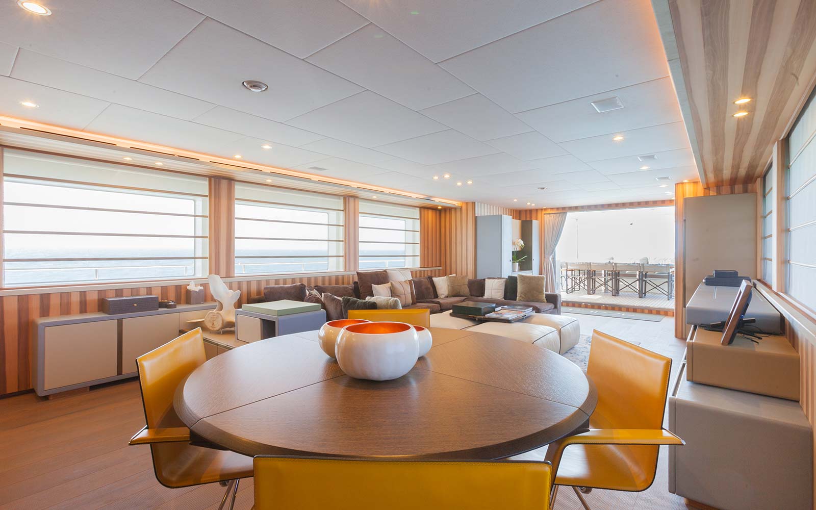 Built for a very experienced seaman and passionate for diving, M/Y Acala features several customizations: a 2 tons crane can launch 6+ mt tender, air-conditioned outdoor areas and a diving center in the lazarette, tanks holder and proper lockers for all the diving gear.