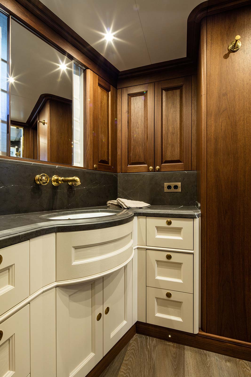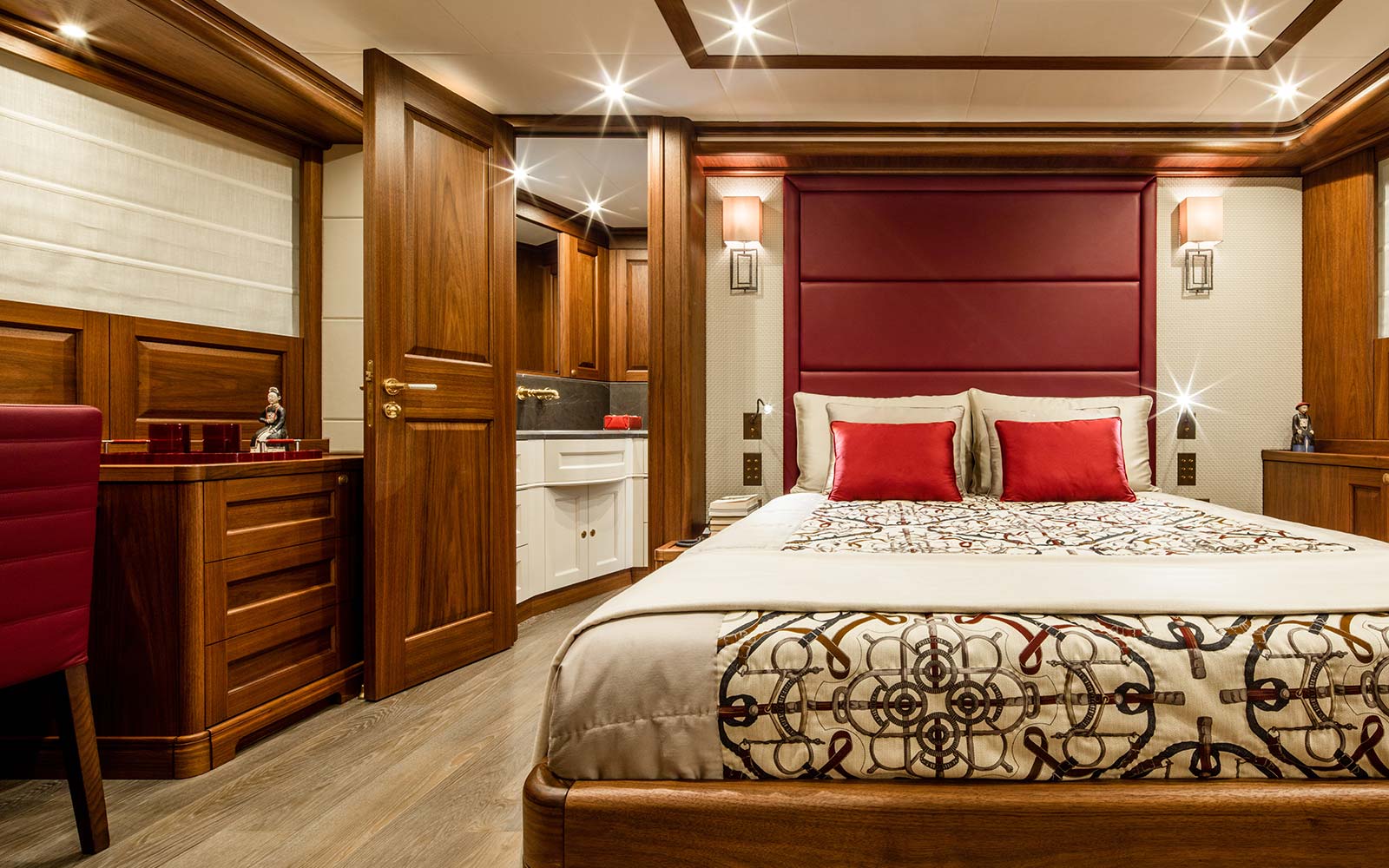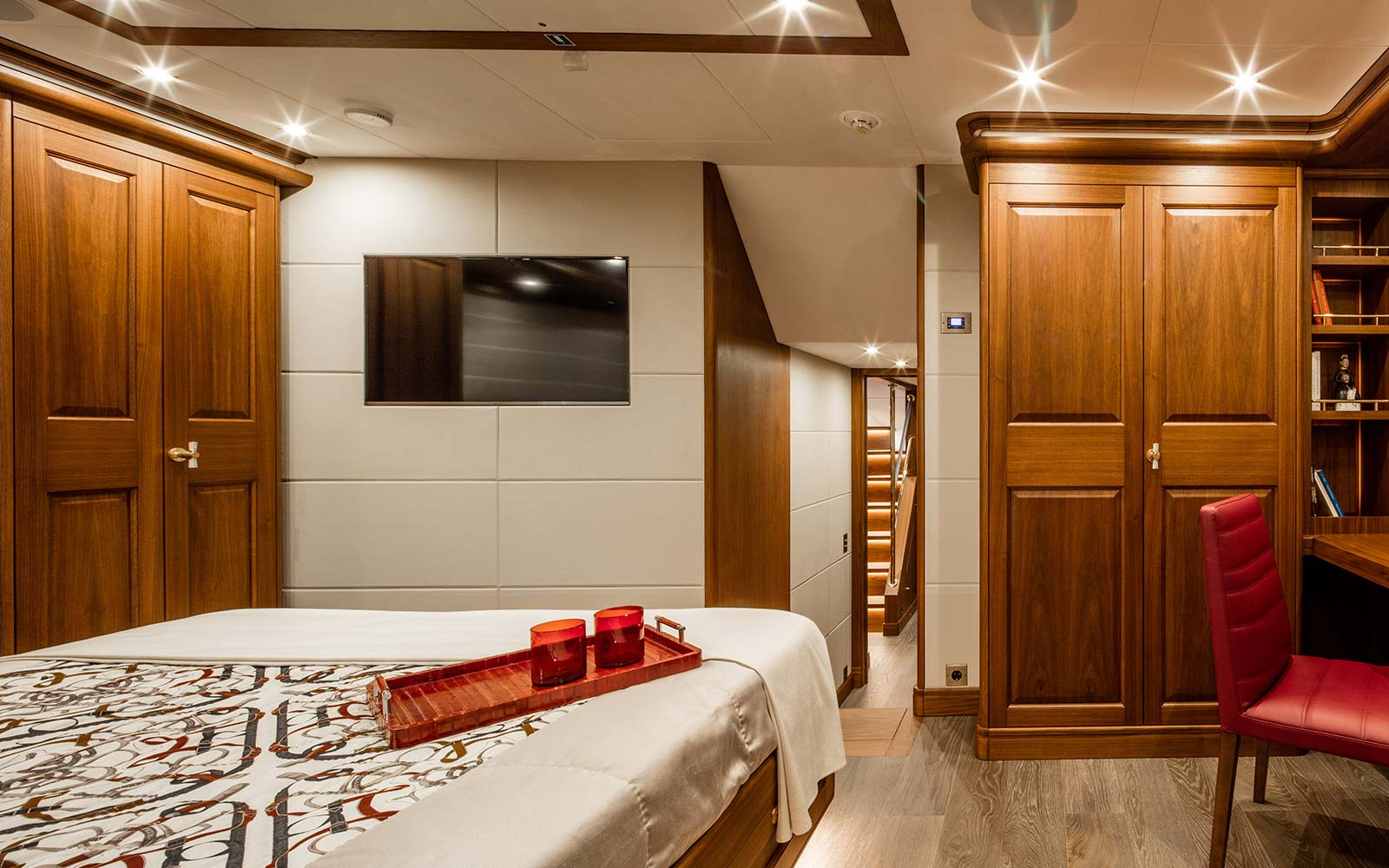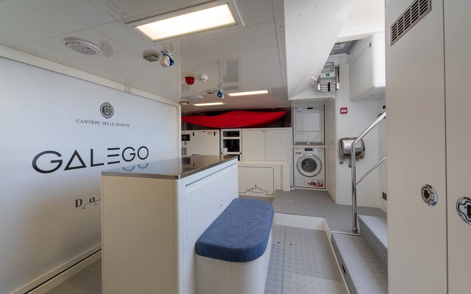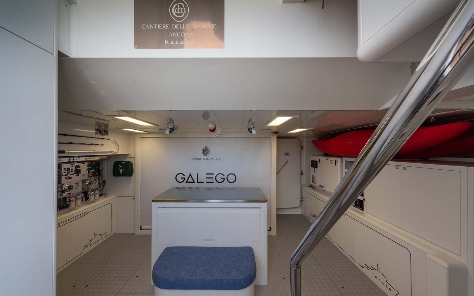 M/Y Galego 's interior design style is warm and welcoming. The theme is pairing classical style and modern touches, especially in accessories and free standing pieces of furniture.