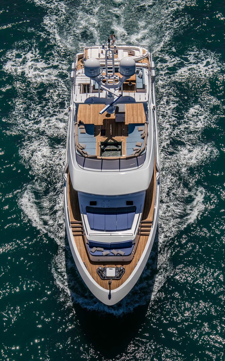 The owner has a large family who will be spending weeks aboard, including the family’s current eight-week shakedown cruise through Greece and Turkey, so he opted for a custom sundeck.