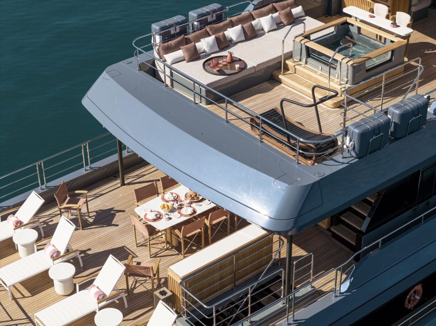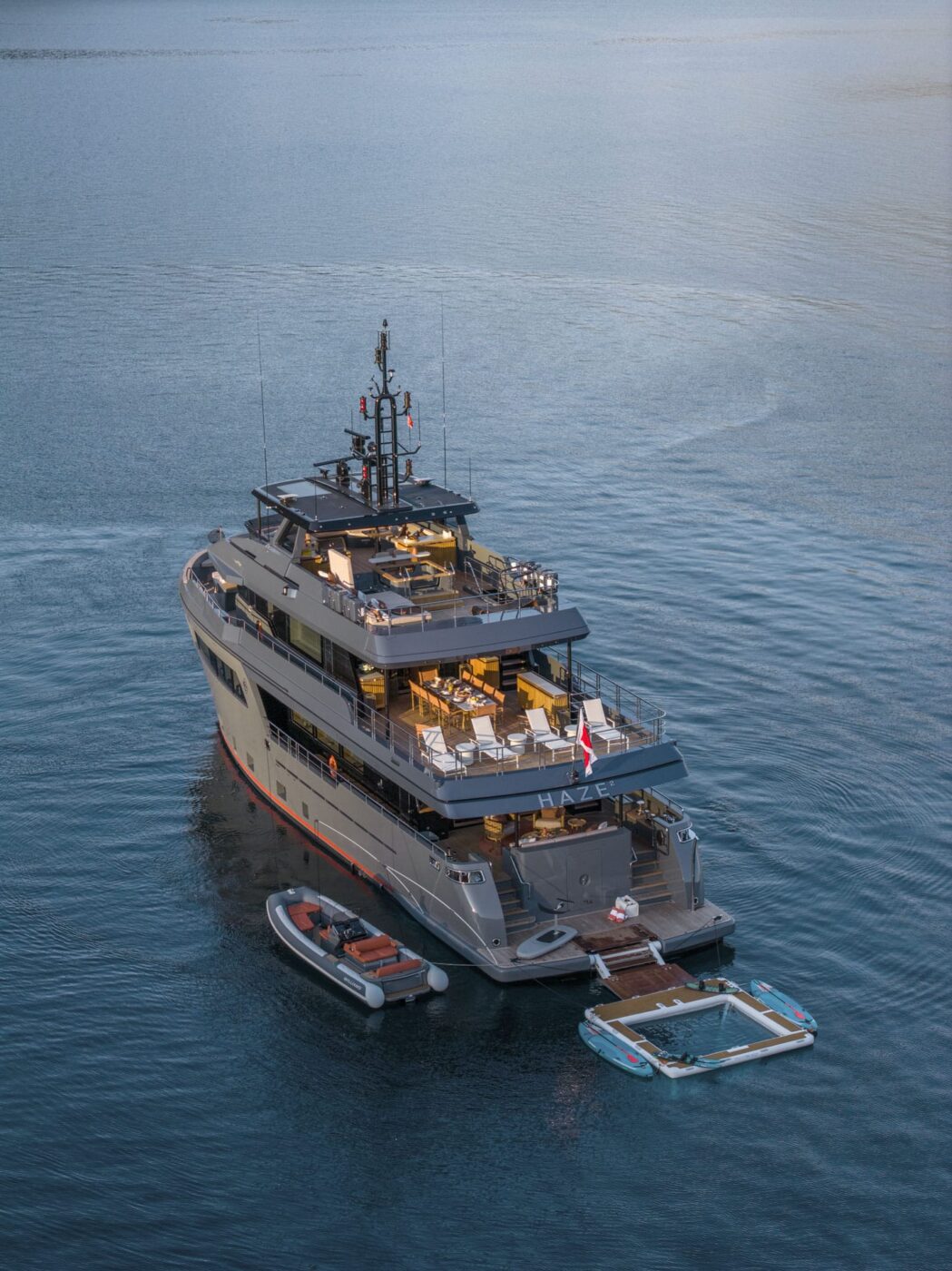 Haze² presents a striking exterior that emphasizes the bold personality of the Darwin Class, enhanced by an eye-catching metallic grey hull and blue superstructure.