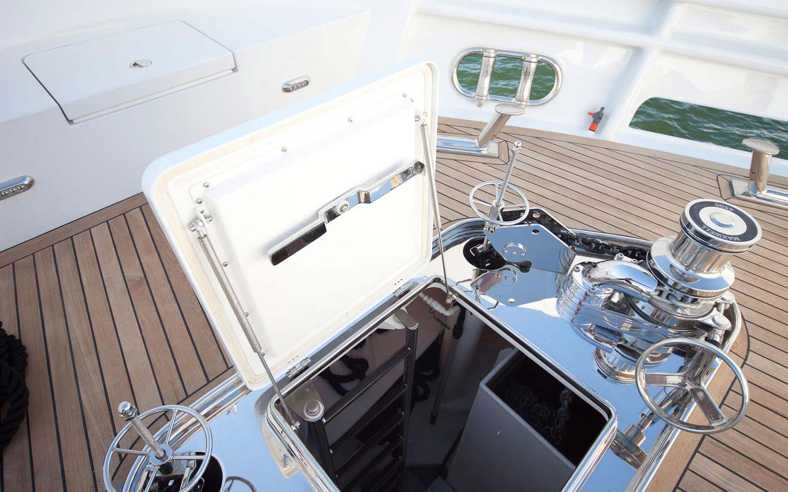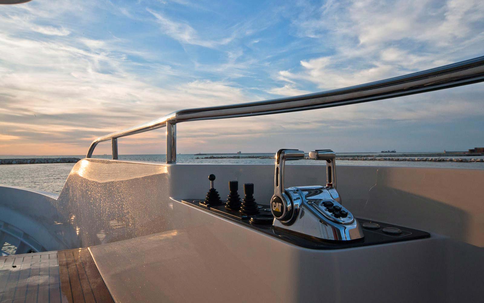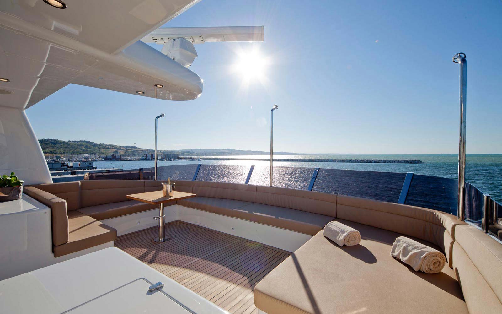 The yacht’s interior design distinguish itself thanks to the linearity and lightness of the materials. Everything has been thought considering the personality and the voyage plans of the owners