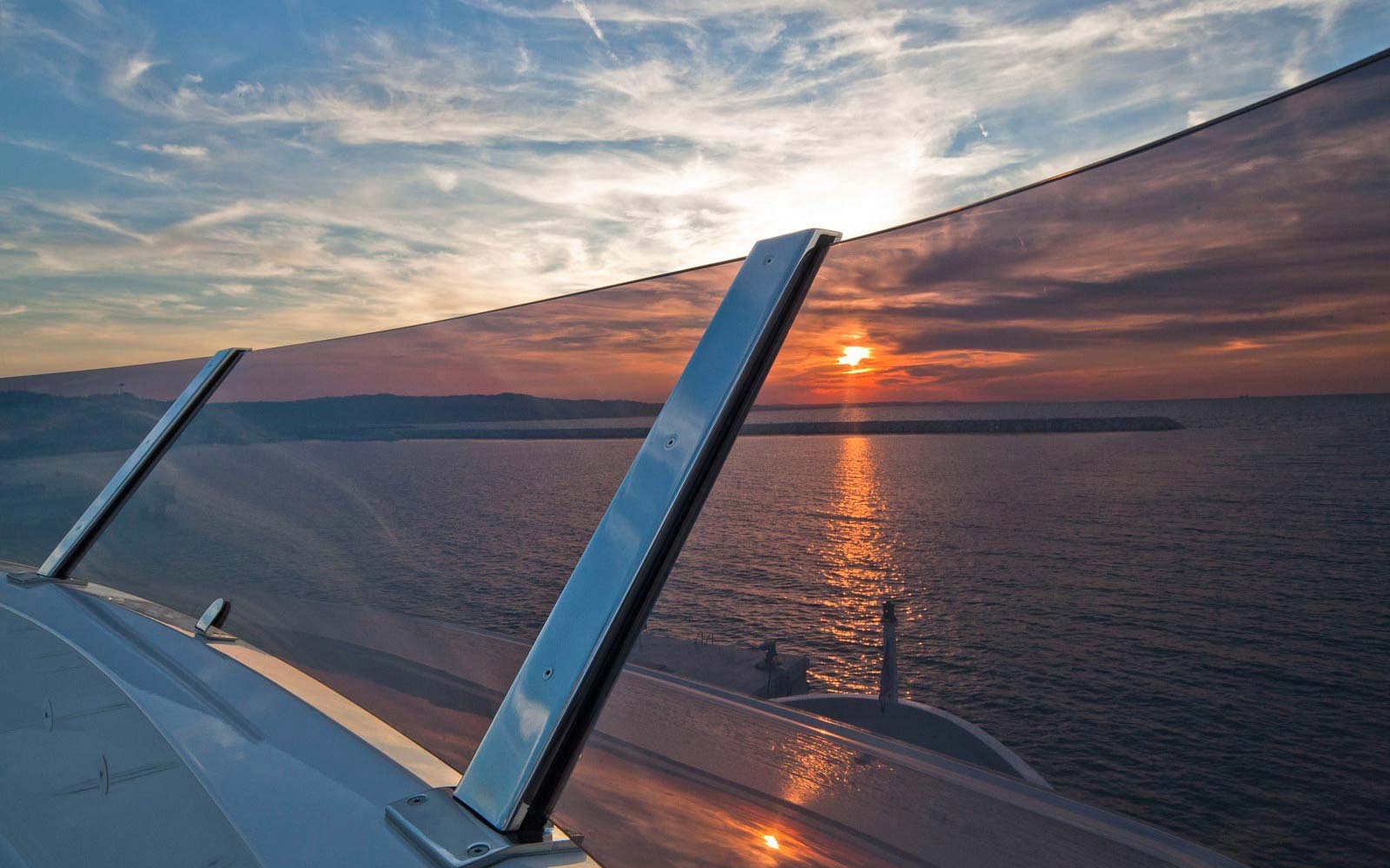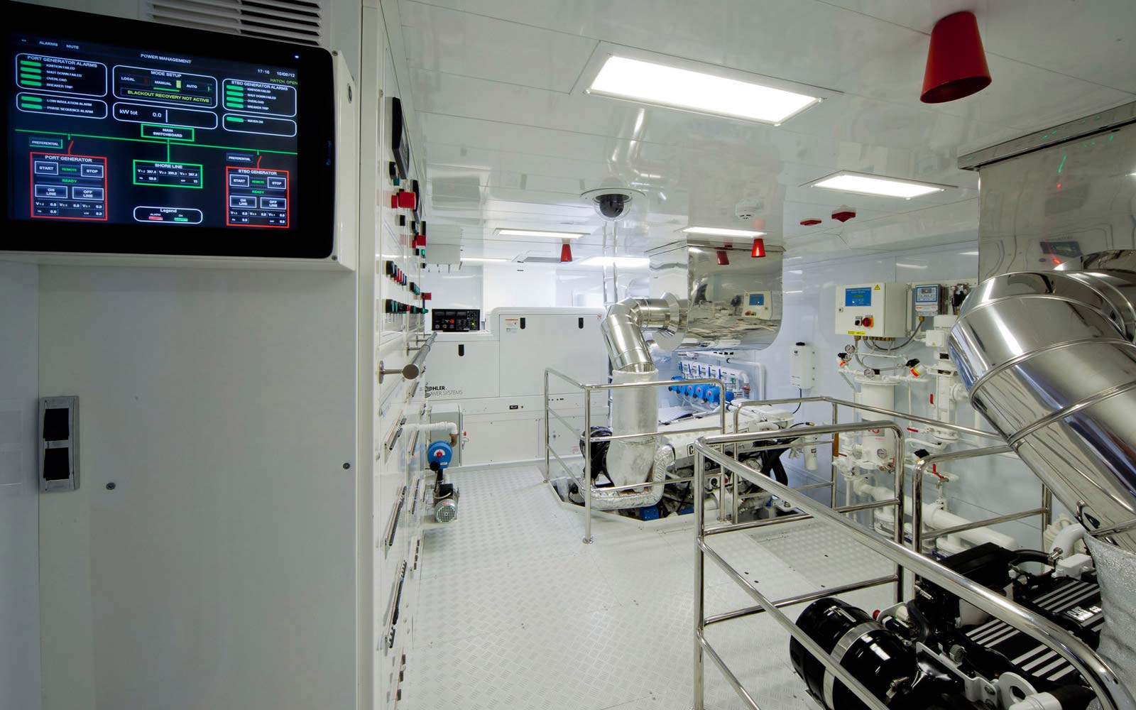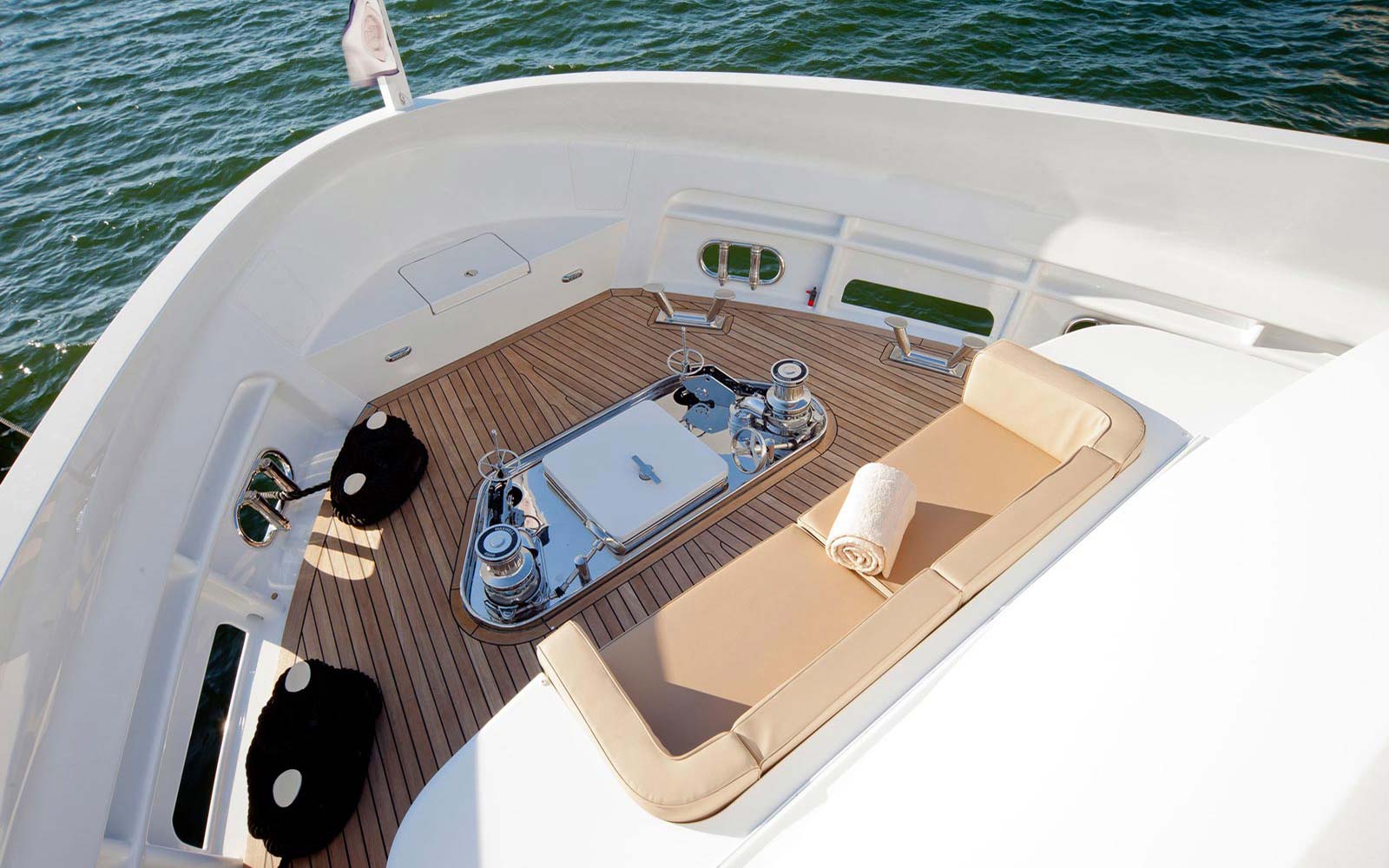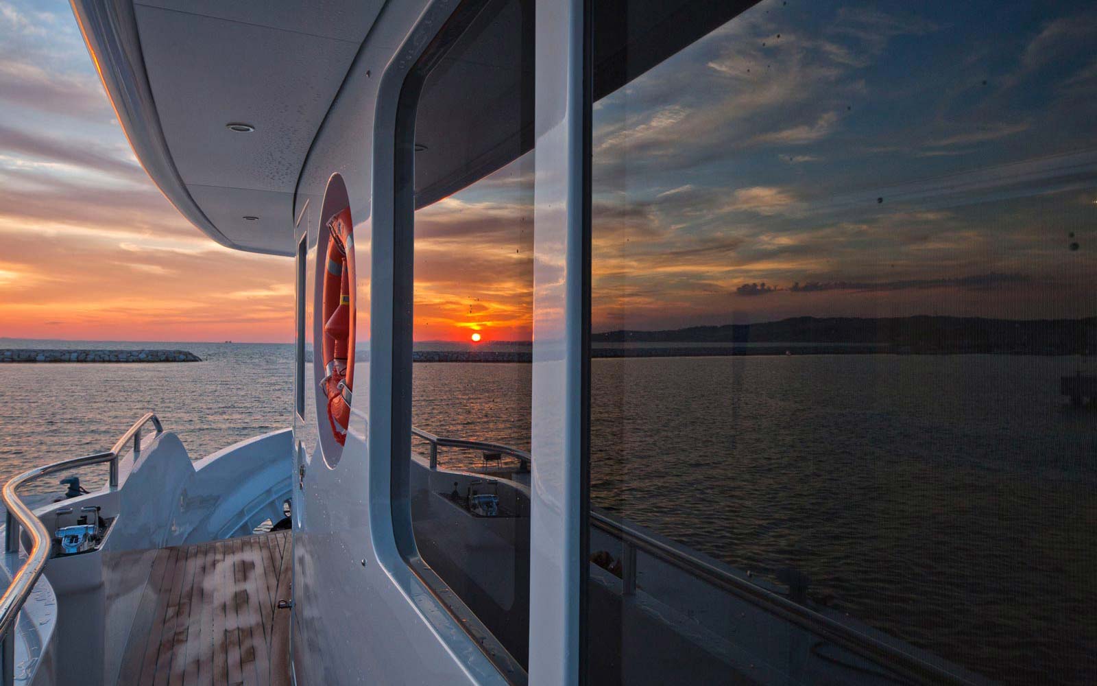 The yacht’s interior design distinguish itself thanks to the linearity and lightness of the materials. Everything has been thought considering the personality and the voyage plans of the owners