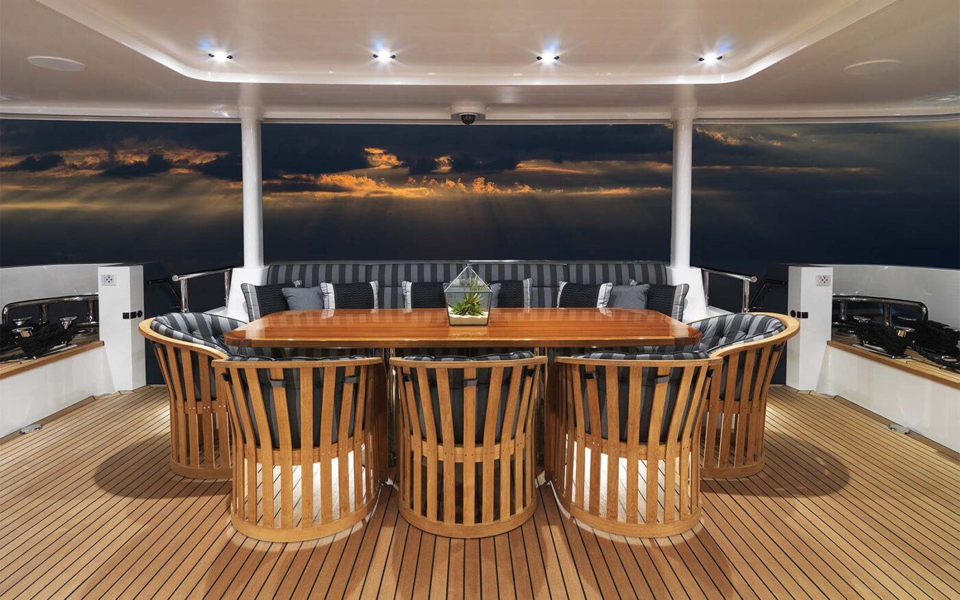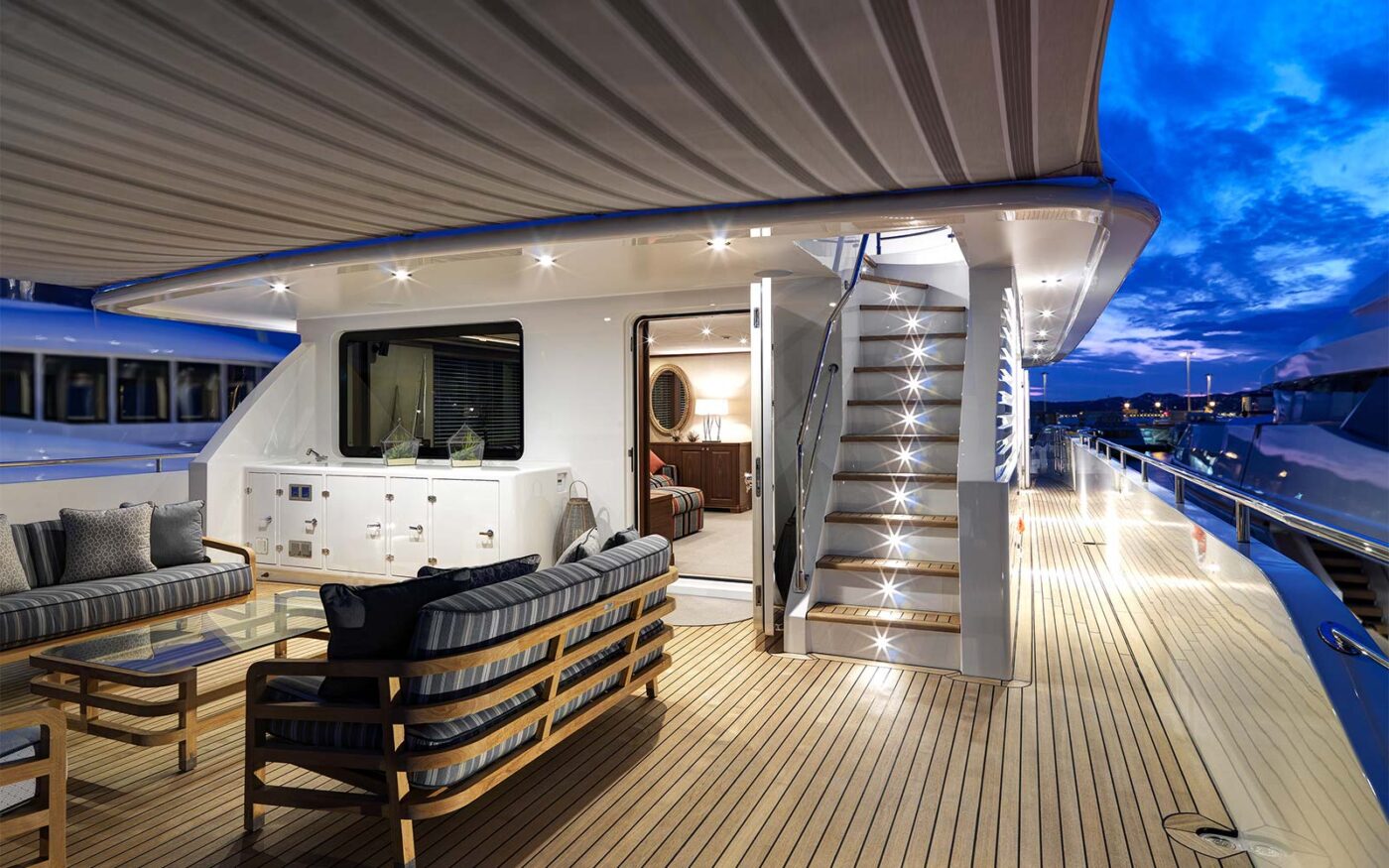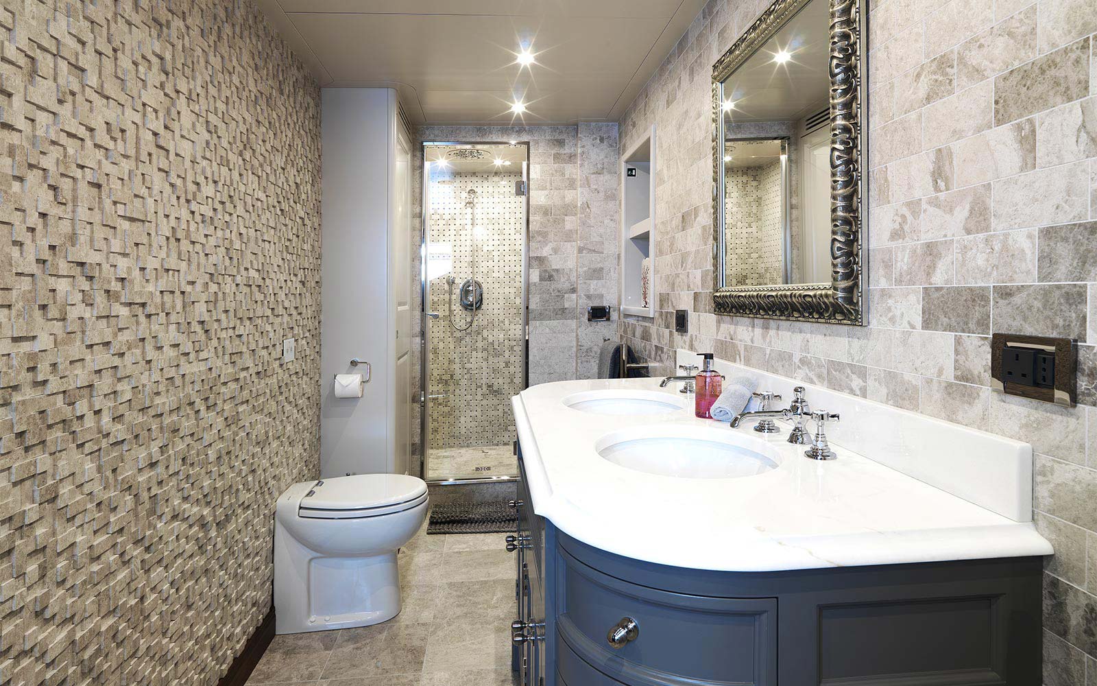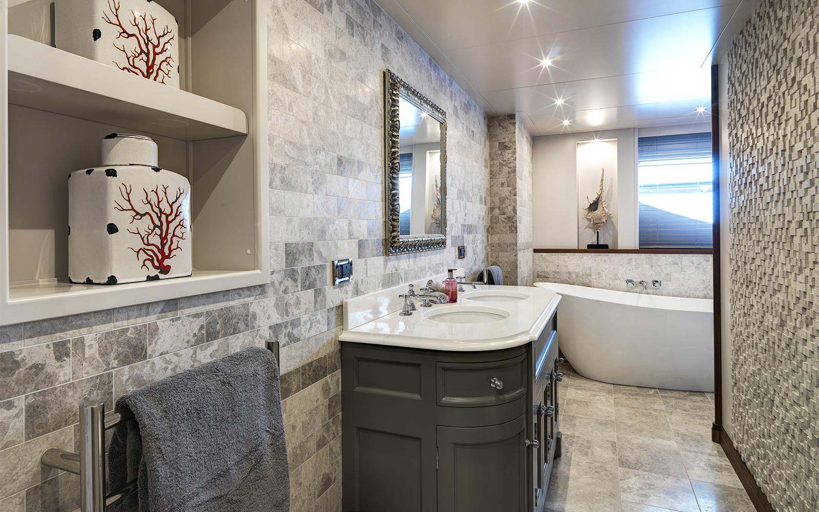MY Storm accommodates 12 guests in 5 cabins: the Owner stateroom is found on main deck forward whereas four guest cabins are found on lower deck: two of them are fitted with double bed whereas the other two have single beds and a pullman bed.