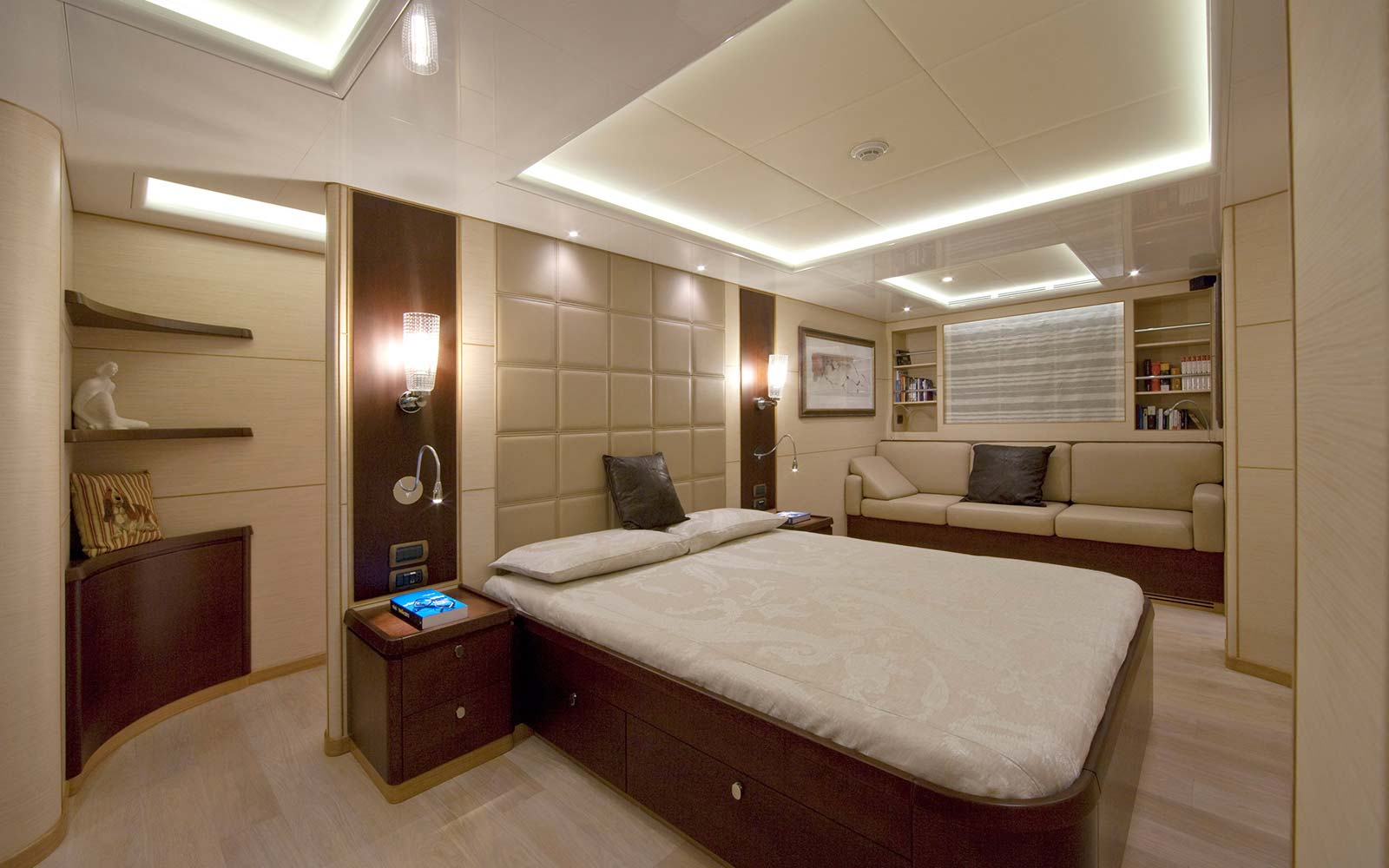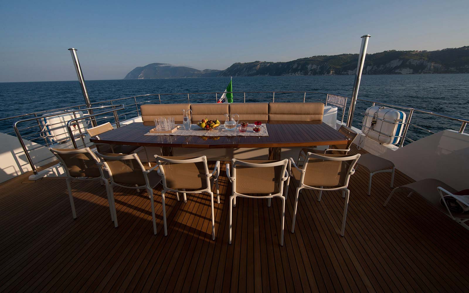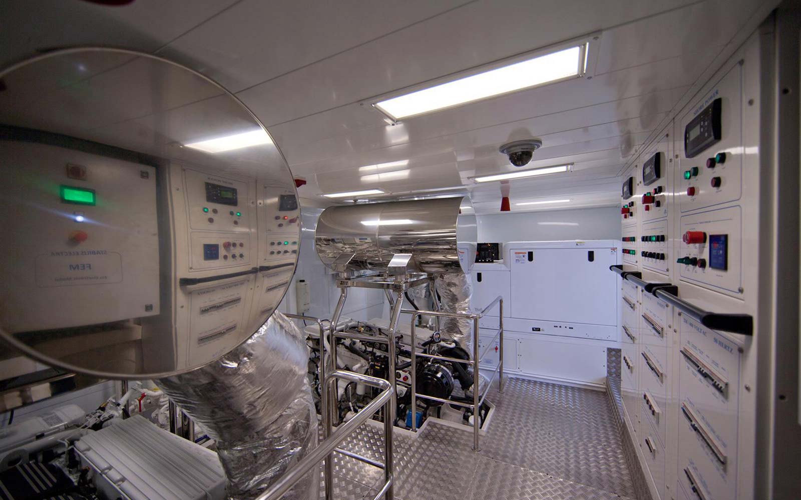 Proper sized and appointed engine room, easy to maintain and to service, large indoor living spaces for guests and for crew, plenty outdoor area, functional and sizeable technical area that allows safe operations of tender and anchors, numerous storage available, possibility to carry a large tender.