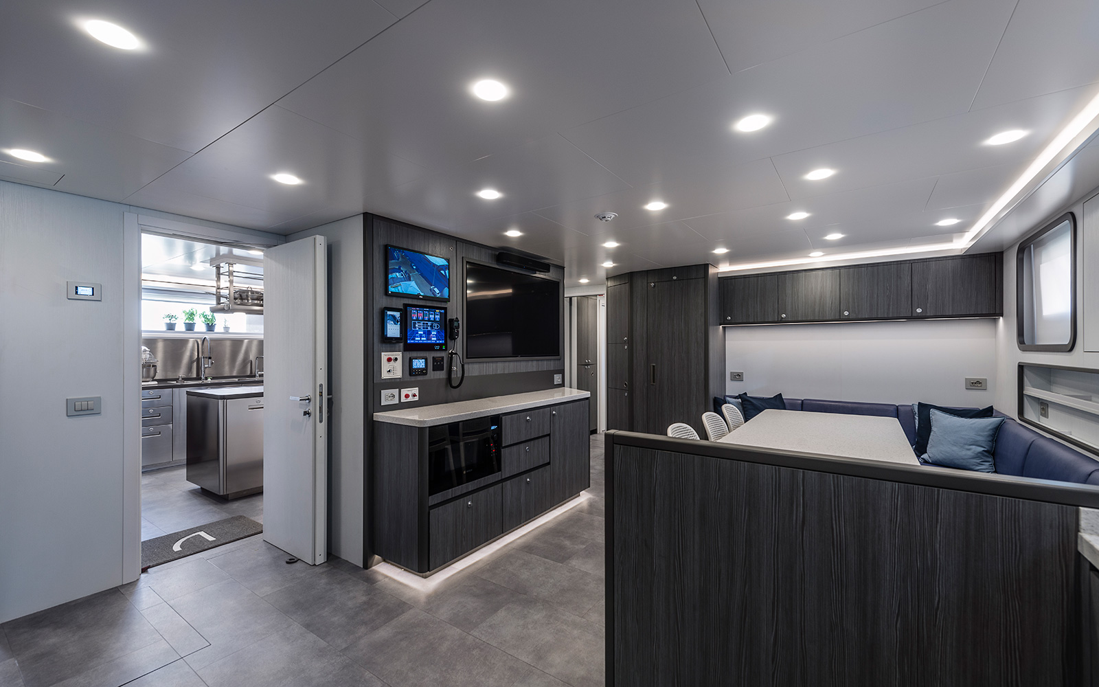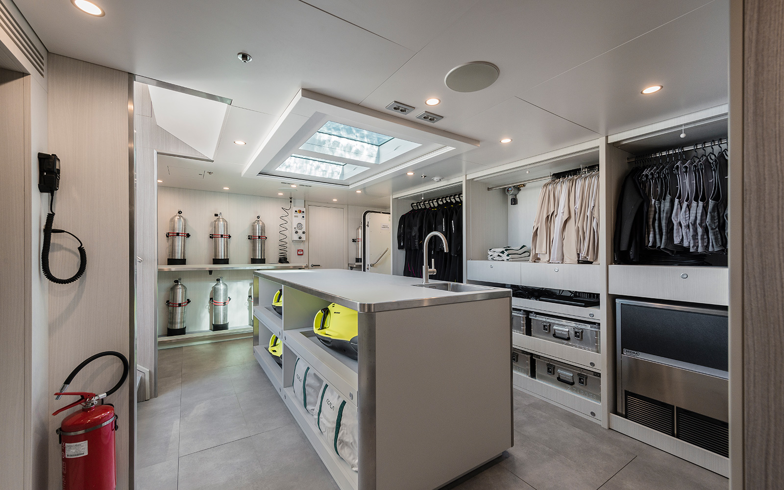 Acala is an ocean-going vessel with a range of above 7500nm at 10 knots that allows her Owner, family and guests to sail to the most remote area of our planet in full safety and comfort. The Owner is a keen explorer and diver and with Acala he will sail the expanses of the oceans to the most beautiful and unspoiled diving spots (even more that he did with his previous CdM’s yacht).