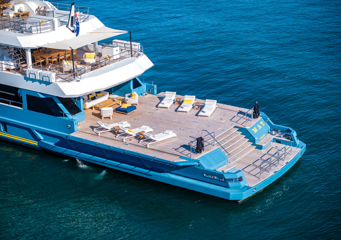 While staying true to the Flexplorer concept, this new vessel introduces significant differences in equipment, layout, accommodations for Owners, guests, and crew, as well as deck configuration compared to Maverick, the first Flexplorer 146. Christened MAT, she exemplifies the series' adaptability and flexibility to meet each Owner's unique vision and specifications.