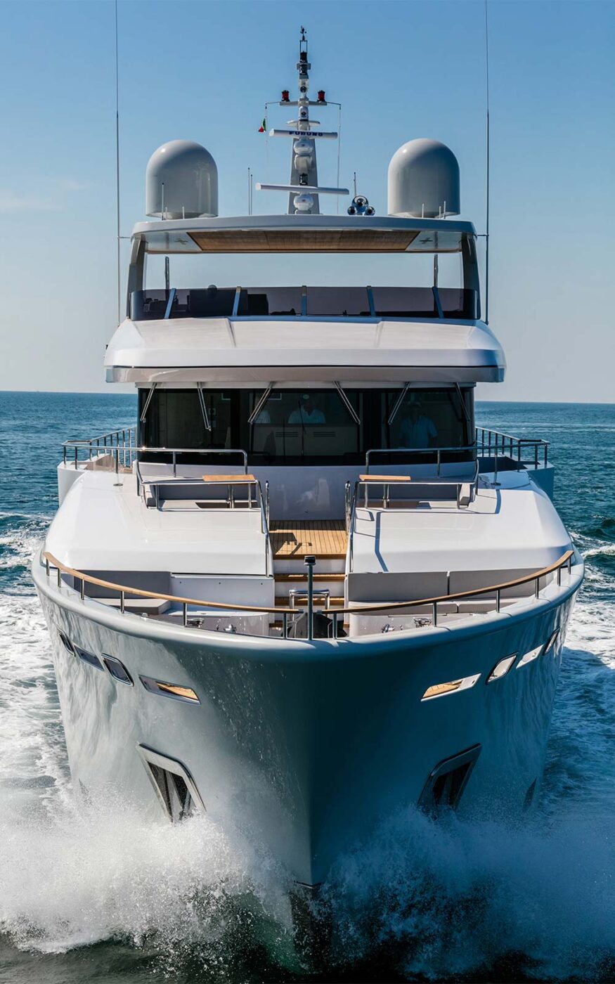 When we designed it, we wanted to give shape to the vision of a motor yacht defined by an innovative relationship between interior and exterior space.