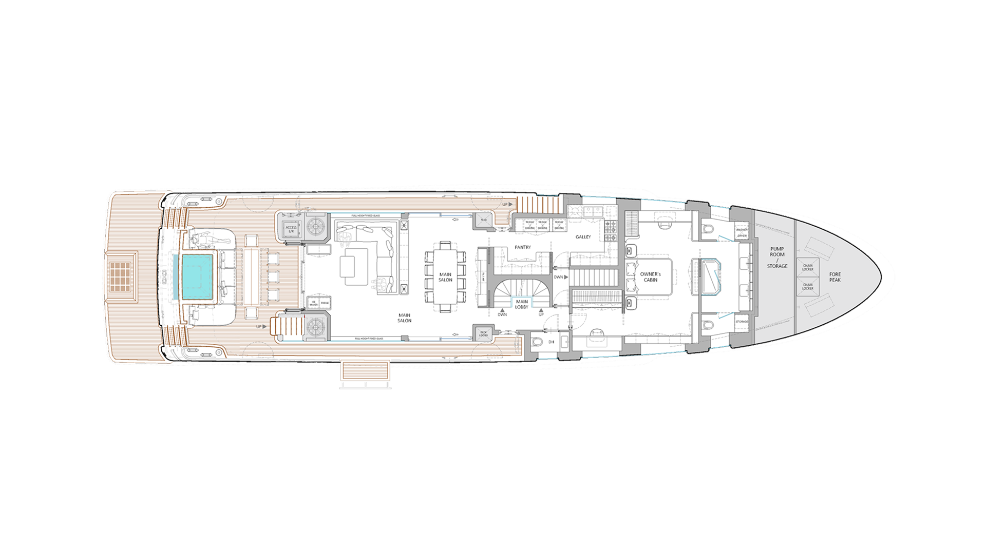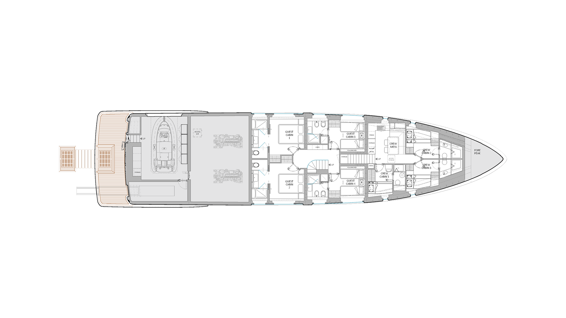 Crafted for extensive navigation, this explorer yacht offers remarkable indoor and outdoor living spaces, ensuring spacious accommodations for Owners, guests, and crew alike.