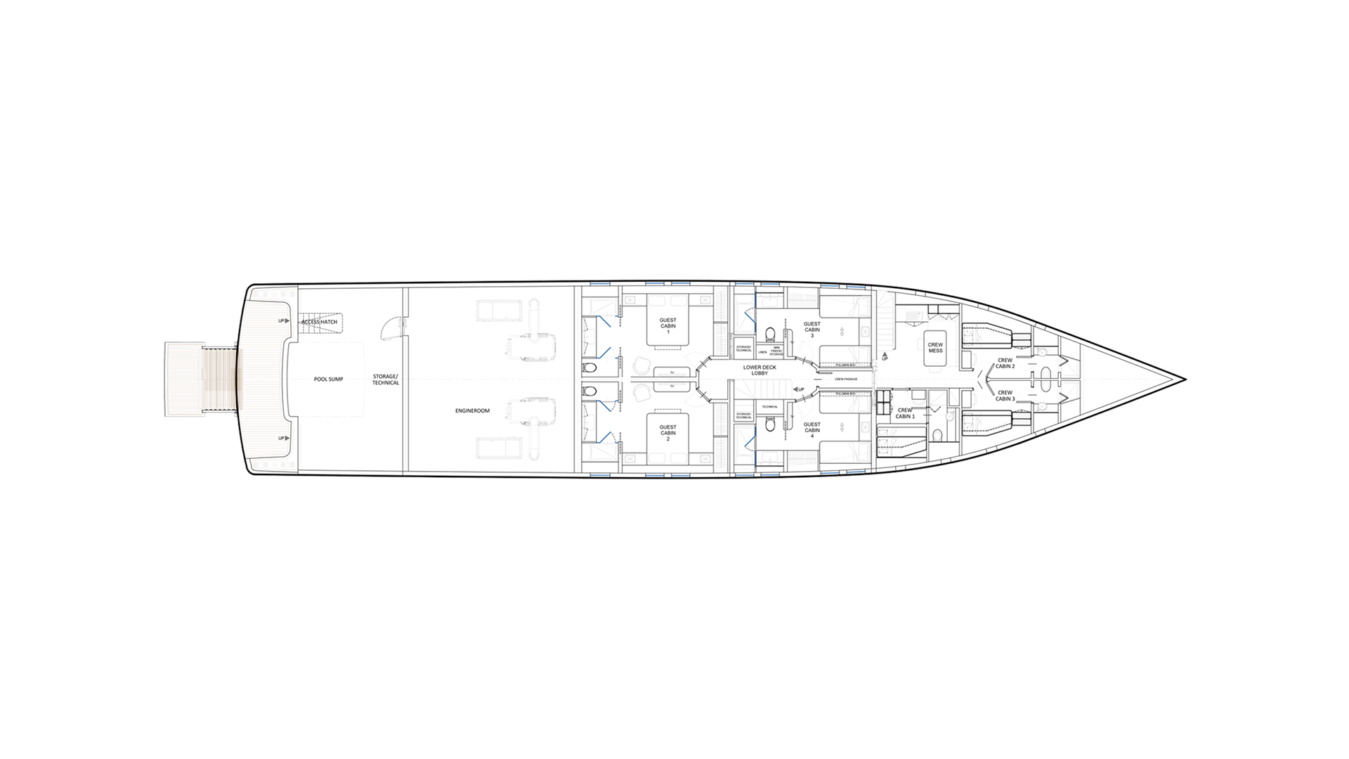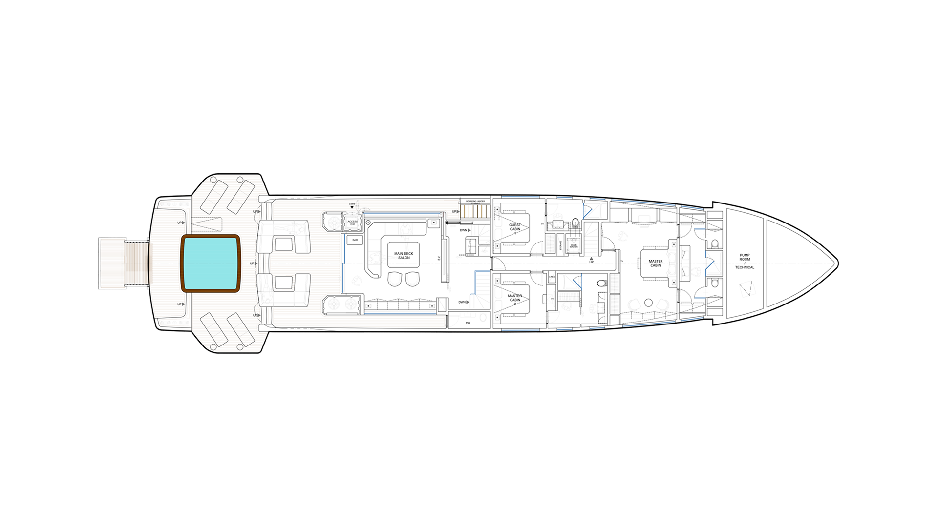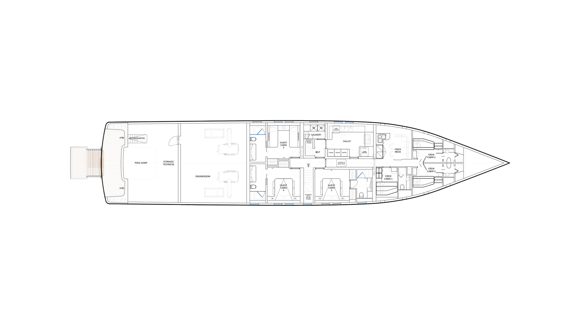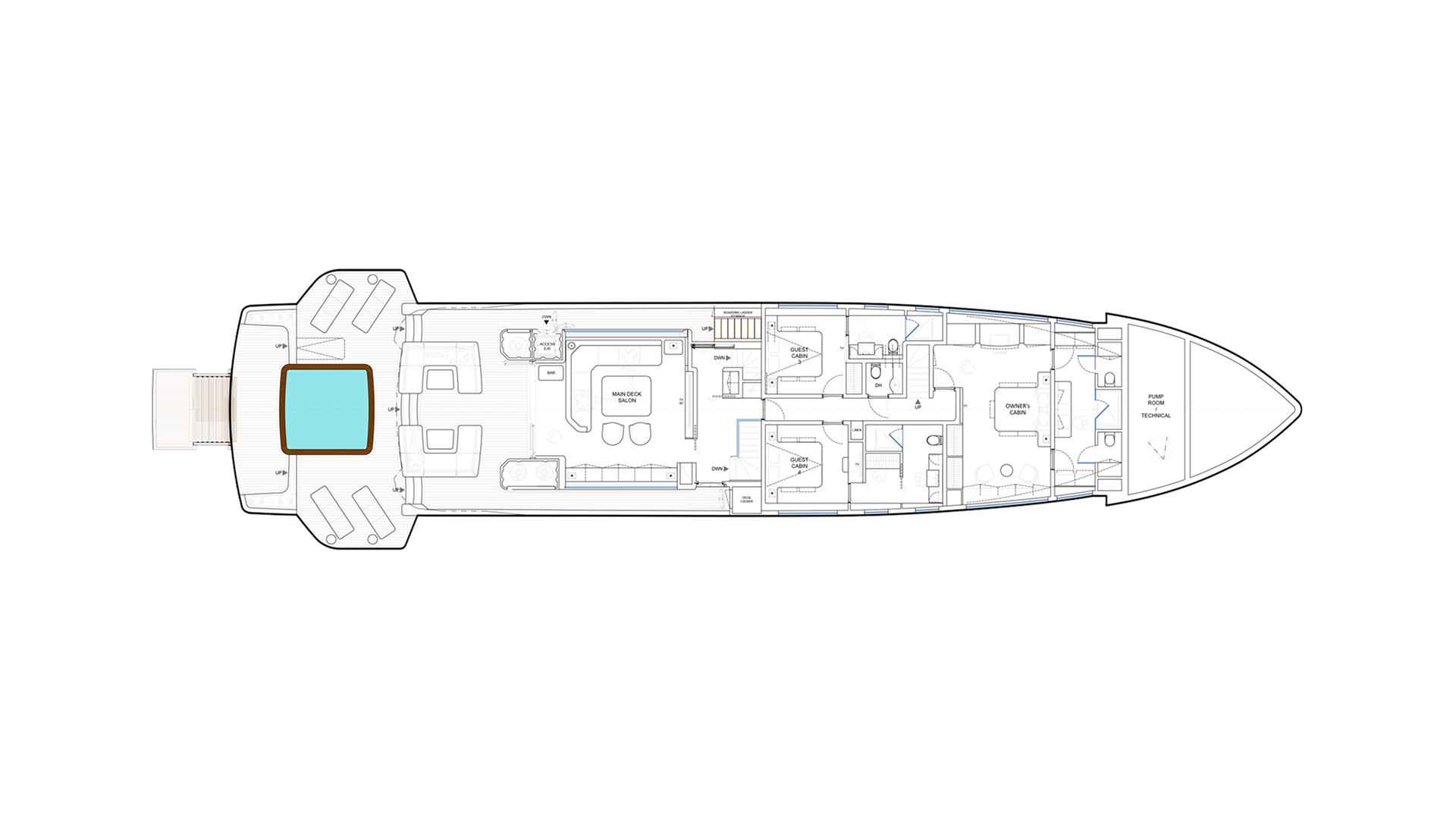 A ship under all aspects, the Deep Blue 130 offers superb comfort in both private and communal areas coupled with outstanding seaworthiness. The Deep Blue 130 boasts remarkably spacious crew quarters.