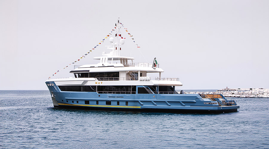 Mat, like the entire Flexplorer line, has been masterfully designed by Hydro Tec which was entrusted also in developing the yacht’s naval architecture and engineering. The interiors have been crafted by Nauta Design, blending elegance and functionality and they perfectly match the spirit of this eye-catching explorer yacht.
