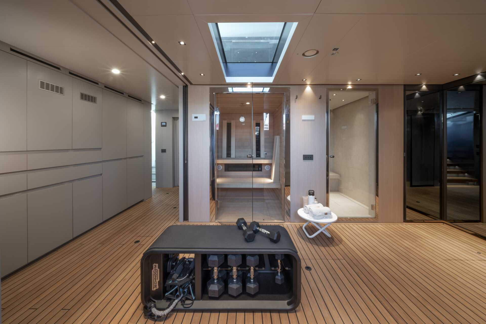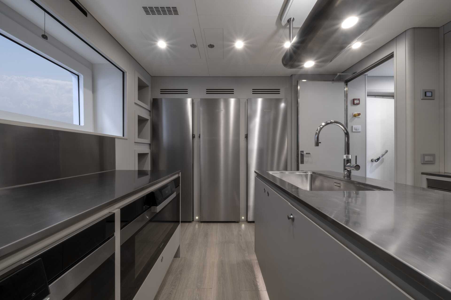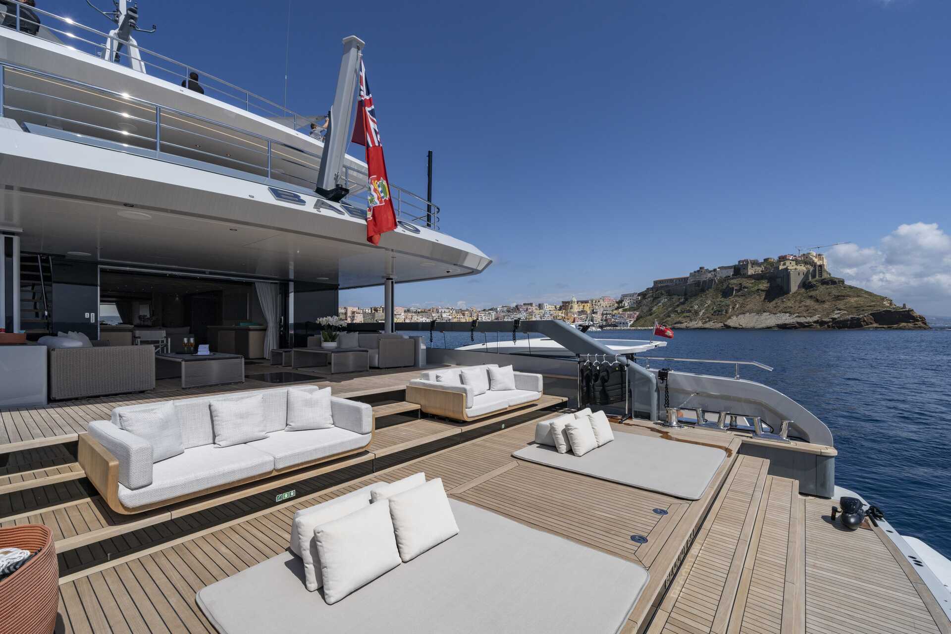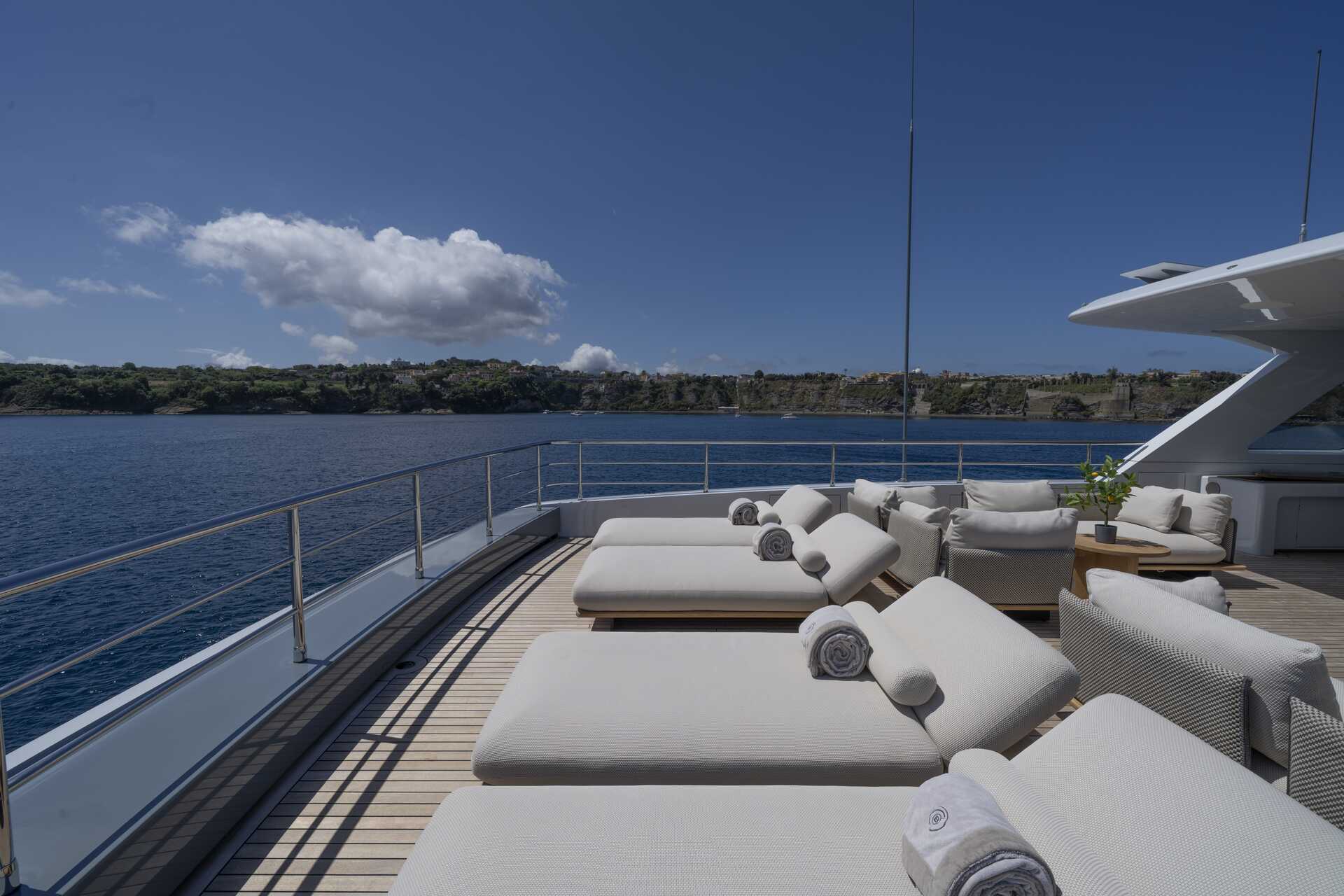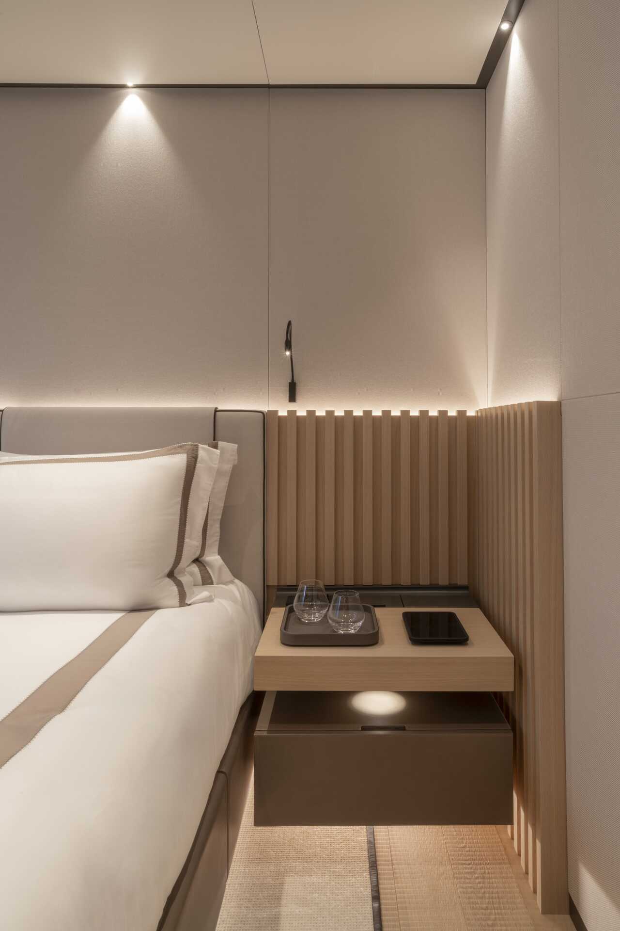 Guests are accommodated in four equally seized suites on the forward section of the Main deck and two twin cabins on the Lower deck. The Lower deck also houses generously sized galley, crew mess, and laundry facilities. Crew accommodations consists of four cabins on the forward section of the Lower deck, while the Captain enjoys a dedicated suite adjacent the wheelhouse. Tenders and toys are conveniently stored in a compartment on the forward section of the Upper deck.