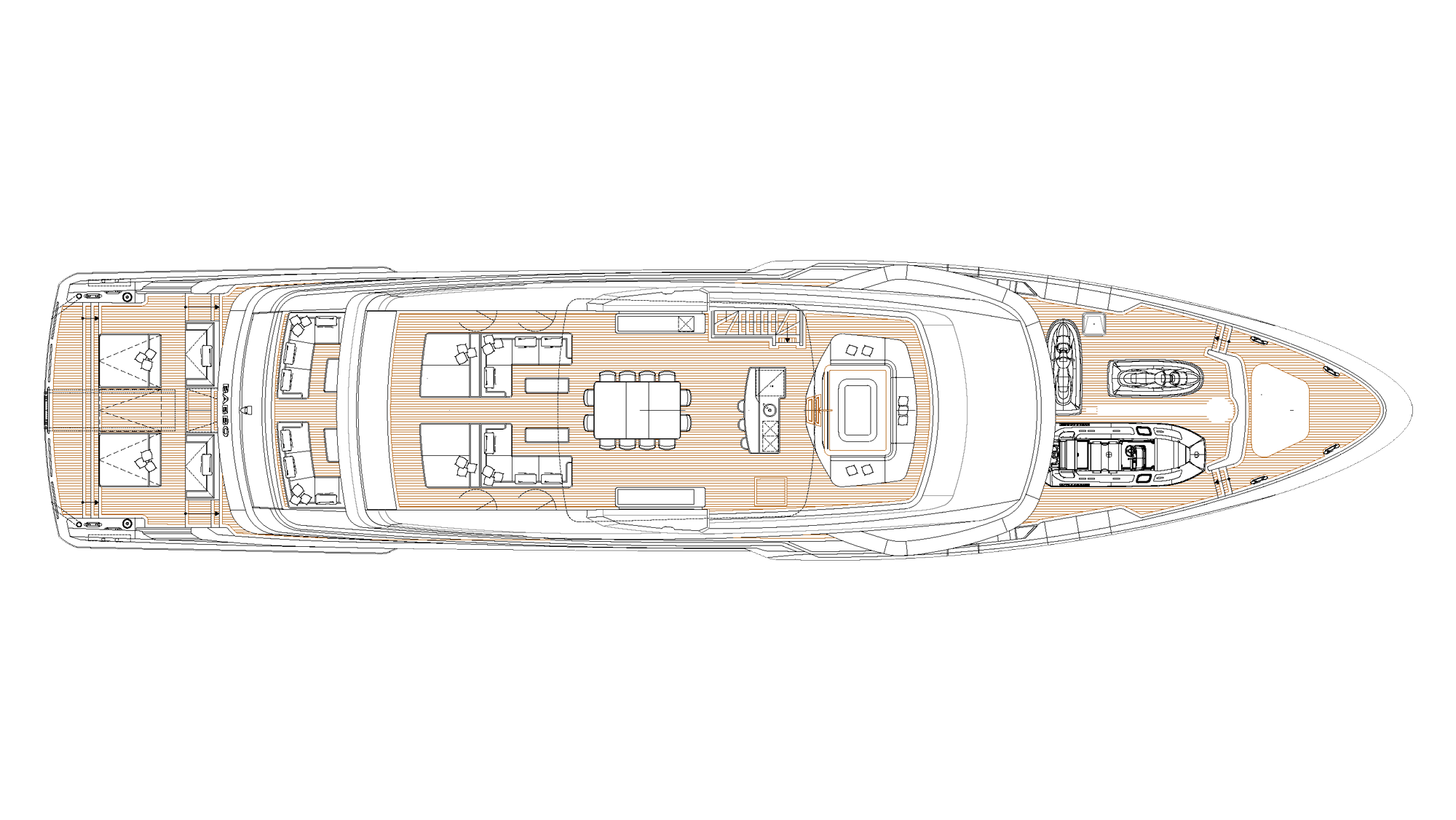 Naval ArchitectureAmong EXP 43’s remarkable features, deserve to be mentioned an extremely large cockpit and the large glazed surfaces on both Main and Upper Deck salon that best show off the indoor/outdoor ethos of this project.
