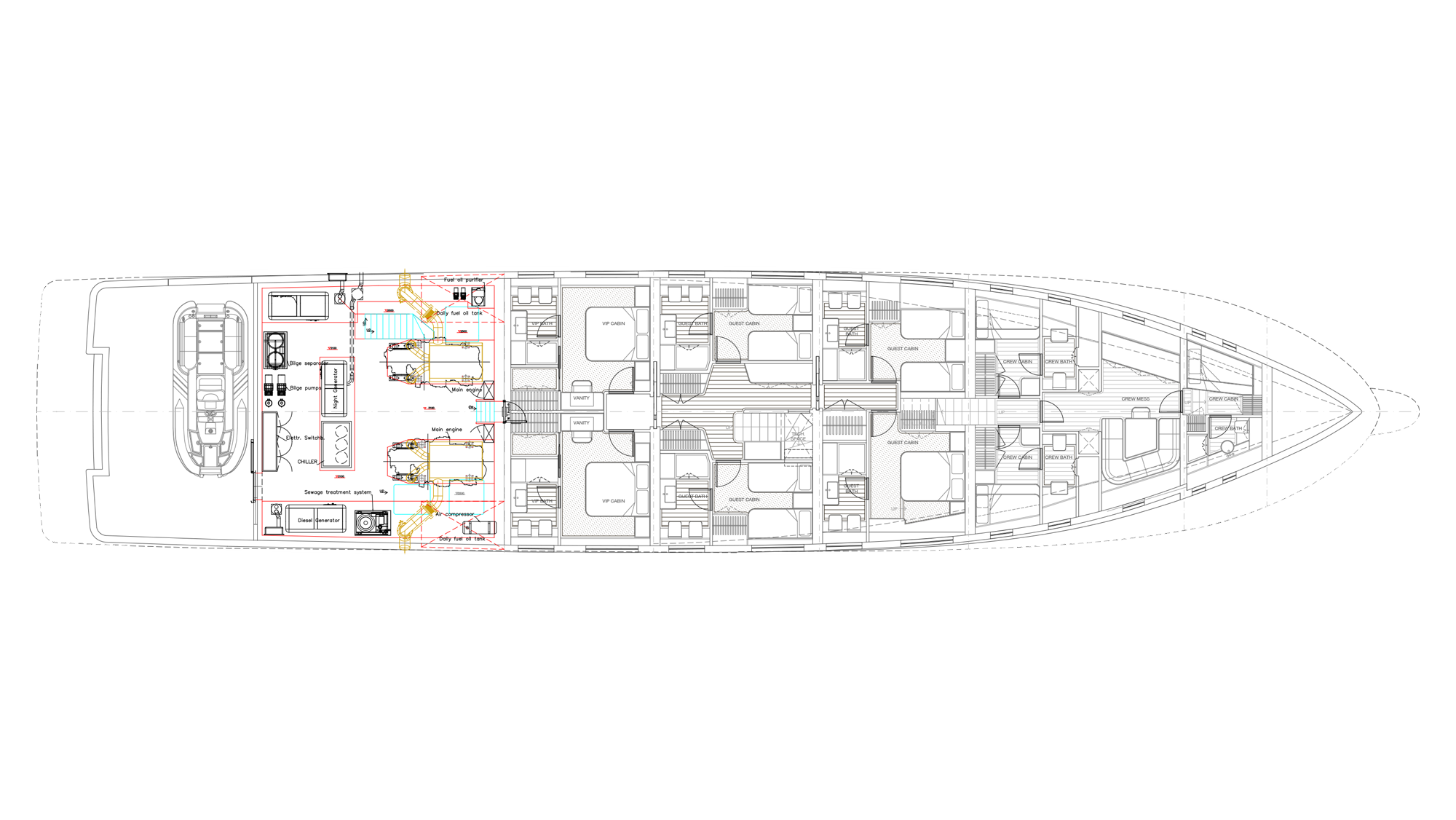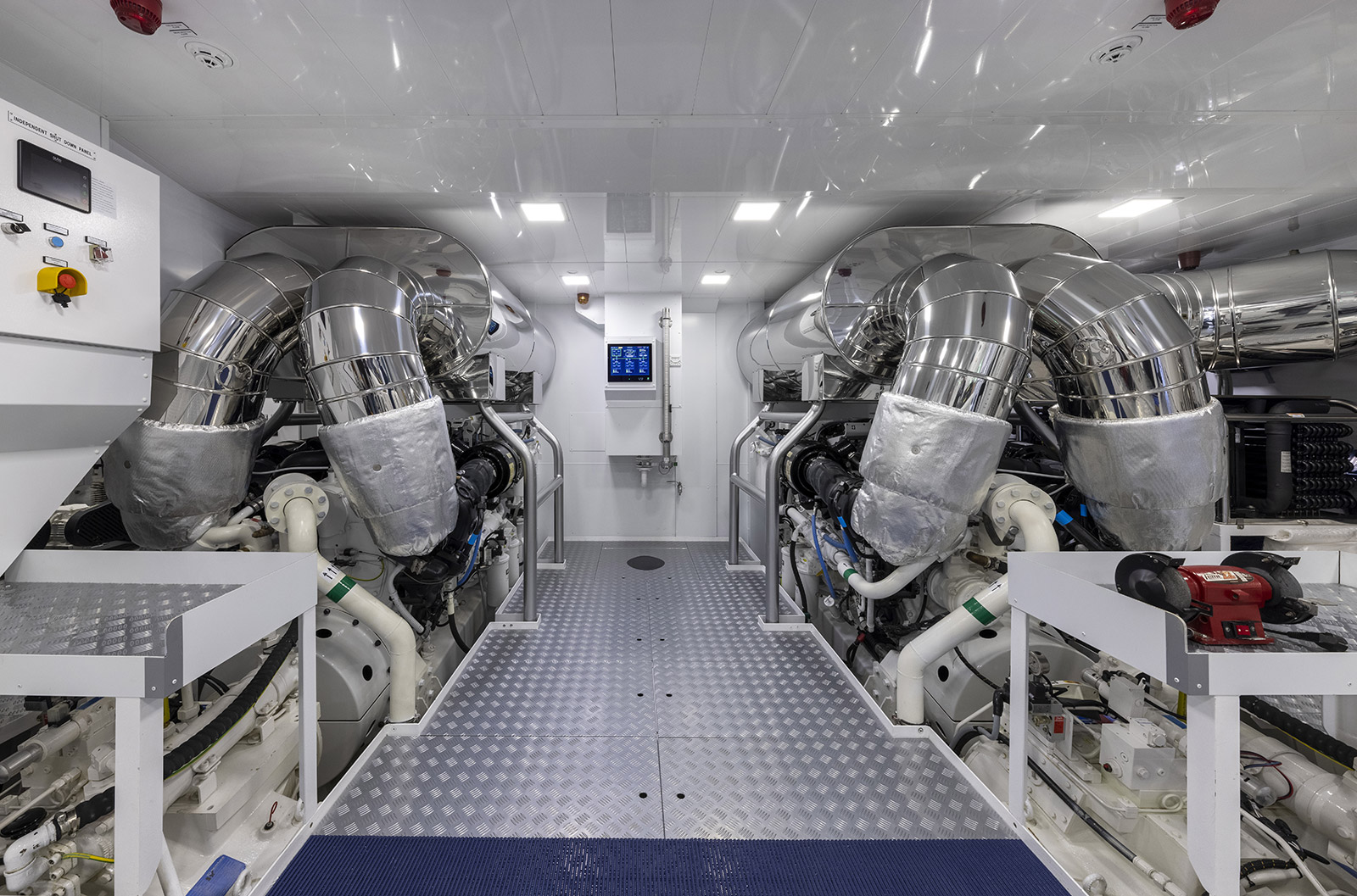Safety and comfort of guests and crew are key points of her design. High-end equipment in a large and well laid out engine room designed for ease of service by crew is another fundamental feature of Explorer 40.22.