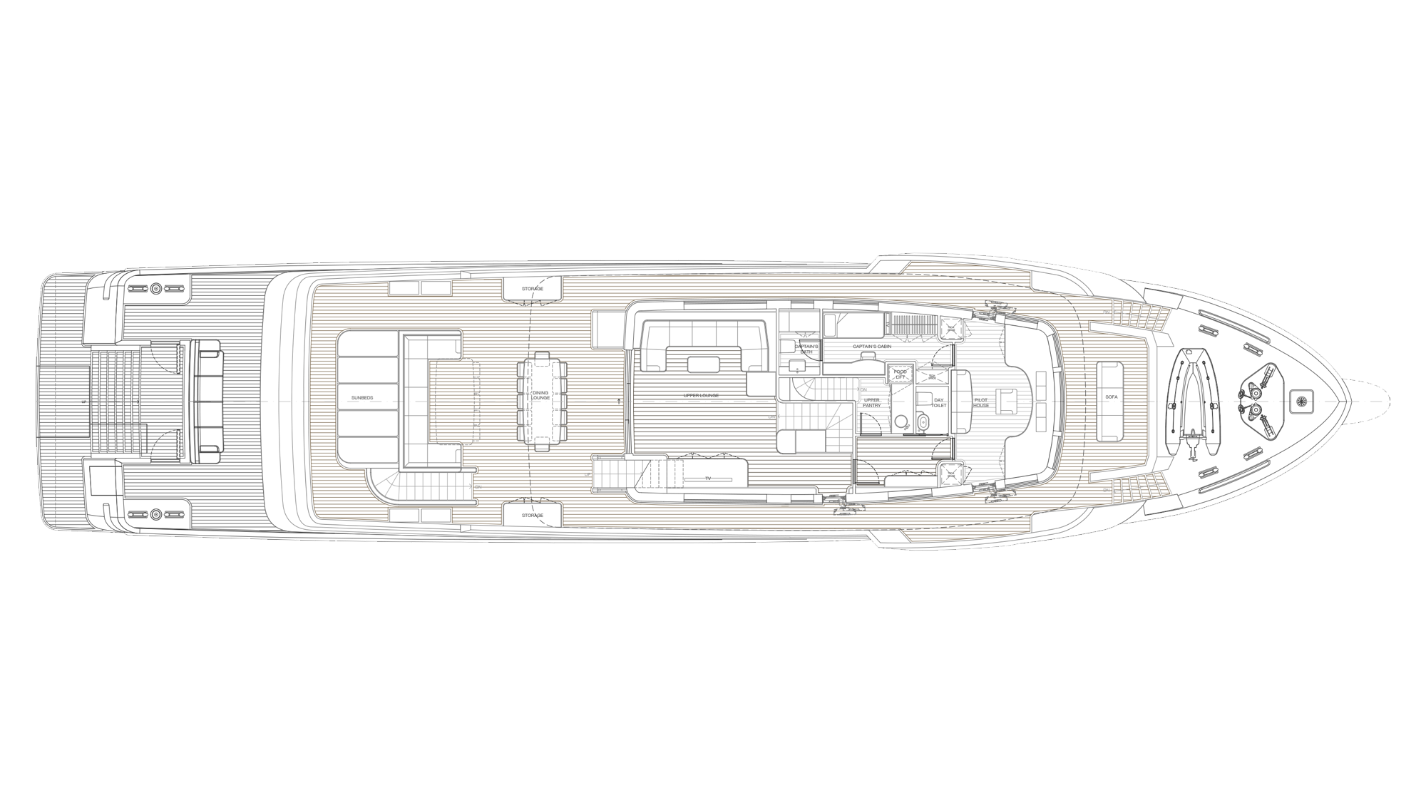She encompasses all qualities that define a top-class explorer yacht designed to handle all weather conditions thanks to a very efficient, sea-kindly and sea-worthy hull form.